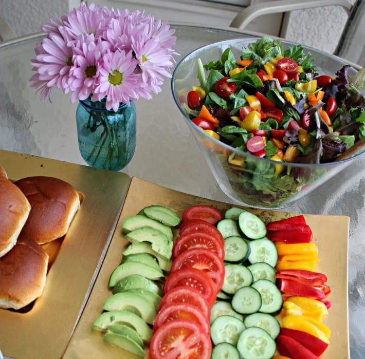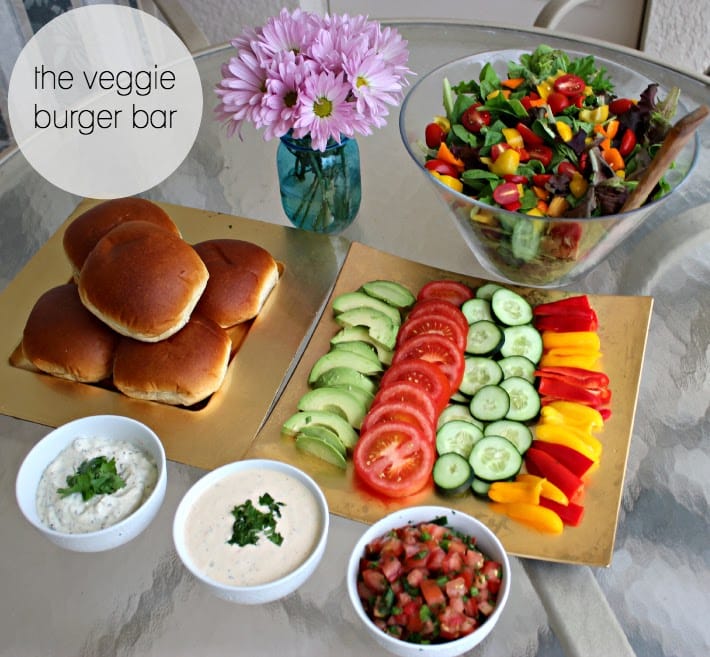 And now onto the main event...the veggie burger and salad bar! When you're having a get together with friends, make-your-own food bars are always a hit. Everyone gets to choose their toppings, so every guest is guaranteed to love their meal. Plus, you can prep all of the items in advance to make party setup a breeze.